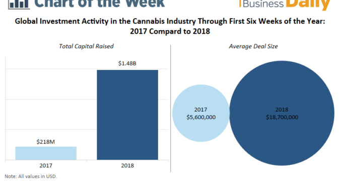 Investment activity in the cannabis industry has been increasing for several years, but 2018 is on pace to shatter previous records, as global financing in marijuana-related businesses topped $1.4 billion just six weeks into the New Year.