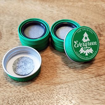 The Evergreen pod is a small metal screw top canister containing some magic beads made from specially formulated materials that can absorb or discharge moisture to keep your herbal materials at the perfect humidity level.